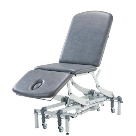 Dette 3-delte behandlingsleje fra Seers Medical er designet til klinikker, der ønsker høj komfort og fleksibilitet i behandlingen. Lejet er elektrisk justerbart via en praktisk fodbøjle, hvilket sikrer nem og ergonomisk betjening for behandleren. Den korte hovedsektion giver optimal adgang til patientens overkrop og gør lejet ideelt til en bred vifte af behandlinger, herunder fysioterapi og massage.