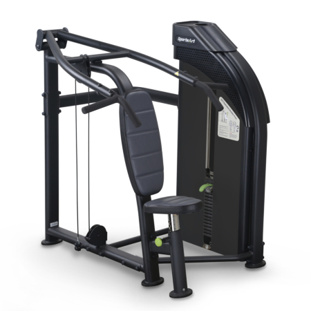 SportsArt P817 Shoulder Press maskine med en nem og enkel justering af sædet gør det utroligt nemt at komme i gang med det samme. Skulderpresseren har både lodrette og vandrette greb, som giver dig mulighed for at træne varieret. Det lodrette greb er særligt godt hvis du har skulderproblemer, da der er mindre fleksion omkring skulderen på SportsArt Skulderpresser.