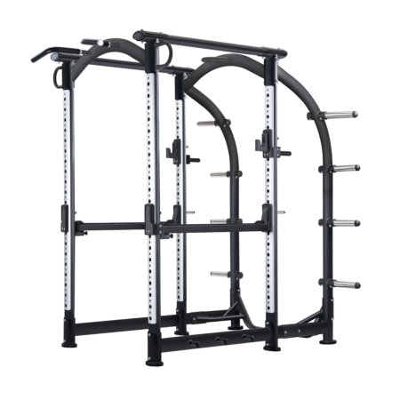Sportsart Power Cage er lavet af materiale i den højeste kvalitet. Produktet har justerbare J-hooks og safety bar, og er har seks stænger til opbevaring af vægte.