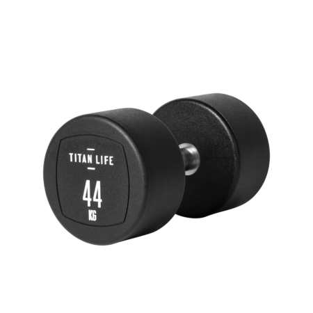 TITAN LIFE PRO Dumbbell 44 kg er en håndvægt lavet i kommerciel kvalitet, som er meget behagelig at holde ved og kan bruges til træning af hele kroppen. Du har mulighed for at vælge mellem vores brede sortiment som går fra 2 kg. til 60 kg. (kun lige tal). Vores håndvægte er svejset sammen med et buet håndtag, som giver et optimalt greb og som er stabile, så de ikke går løs under træning. Disse håndvægte kommer i et unikt design med PU betræk på vægtenheden. Det tykke gummilag sikrer lavt støjniveau, samt beskytter dit gulv.