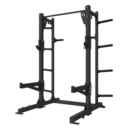 Torque TR1 Half Rack er den ideelle løsning til dig, der ønsker et kompakt, robust og funktionelt træningsstativ, selv når pladsen er begrænset. Med sin solide 3x3” forstærkede base står stativet stabilt under selv tunge løft, og det kan om ønsket fastgøres i gulvet for maksimal sikkerhed. Den vertikale vægtopbevaring giver let adgang til både vægtskiver og små vægte, mens integreret opbevaring til vægtstang – både vertikal og med formstøbt nylonbeskyttelse – sikrer, at dit udstyr altid er organiseret og beskyttet. TR1 gør det muligt at tilpasse træningsoplevelsen med forskellige pull-up bars og kompatibelt tilbehør, og stativet leveres som standard med bar supports, bar catches, single cross pull-up bar og nederste pegs til modstandsbånd.