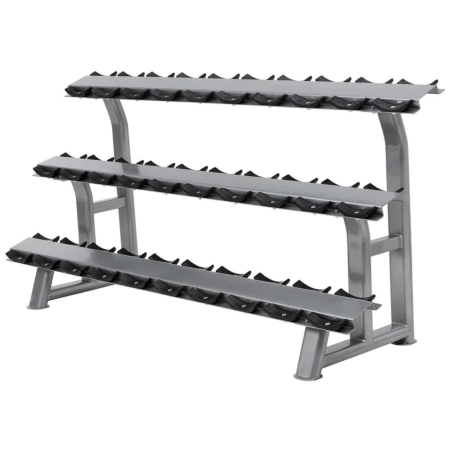 TITAN LIFE Dumbbell Rack er et kraftigt og funktionelt håndvægtsrack, der er designet til at skabe orden og overblik i fitnessrummet. Racket har plads til i alt 10 sæt håndvægte og er opbygget med en praktisk tredelt løsning, hvor der kan placeres 8 håndvægte på den øverste række og 6 håndvægte på hver af de to nederste rækker.