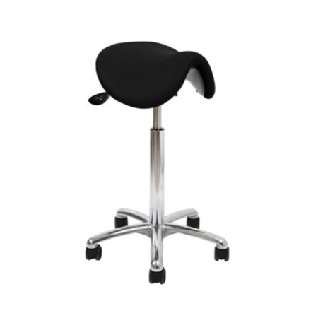 VELA Samba Medical 400 er en ergonomisk klinikstol, der er særligt velegnet til arbejde i behandlermiljøer, hvor behandler og assistent skal kunne sidde tæt på patienten og samtidig bevare en sund arbejdsstilling. Stolen har et anatomisk formet sadelsæde, som understøtter en åben hoftevinkel og en naturlig, rank siddestilling med svaj i ryggen. Det bidrager til at forebygge foroverbøjede arbejdsstillinger og mindsker belastningen af ryg og skuldre i løbet af arbejdsdagen.